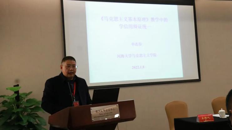 The Seminar on the Teaching and Research of the Basic Principles of Marxism was held as scheduled at the International Conference Center of Nanjing University on January 8, 2022, with the aim of promoting the teaching quality of the course “Basic Principles of Marxism” and improving theoretical research on the basic principles of Marxism in colleges and universities in Jiangsu Province, as well as strengthening the communication among the backbone teachers and researchers specializing in Marxism in Jiangsu province. The seminar was co-sponsored by the School of Marxism at Nanjing University (NJU), the School of Marxism at Nanjing University of Chinese Medicine (NJUCM), the School of Marxism at Nanjing University of Posts and Telecommunications (NJUPT), and the Research and Learning Platform of online academic database CNKI. More than 90 teachers from universities in Jiangsu province attended the event.