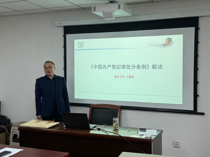 王建华书记从党的历次主题教育学习出发,指出党的学习教育既是为了解决思想问题,也是为了解决行动问题。通过围绕《中国共产党纪律处分条例》的修改历程、条文修改具体情况等具体内容,王建华书记详细解读了《中国共产党纪律处分条例》(下称《条例》)的内容与意义。他指出,本次《条例》修改有五大亮点,第一是将“两个维护”的要求贯穿始终;第二是进一步严明政治纪律和政治规矩,带动各项纪律全面从严;第三是坚持尊崇和维护党章;第四是落实纪法贯通要求;第五是坚持严管和厚爱结合,激励和约束并重。