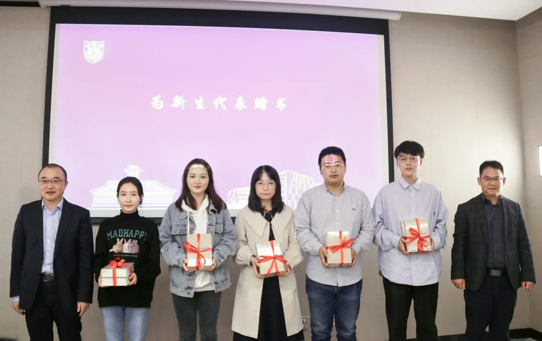 王建华书记、陈建副经理向新生代表赠送《马克思恩格斯文集》,勉励同学们读经典、悟真理,从原著中汲取养分、夯实学理基础。
