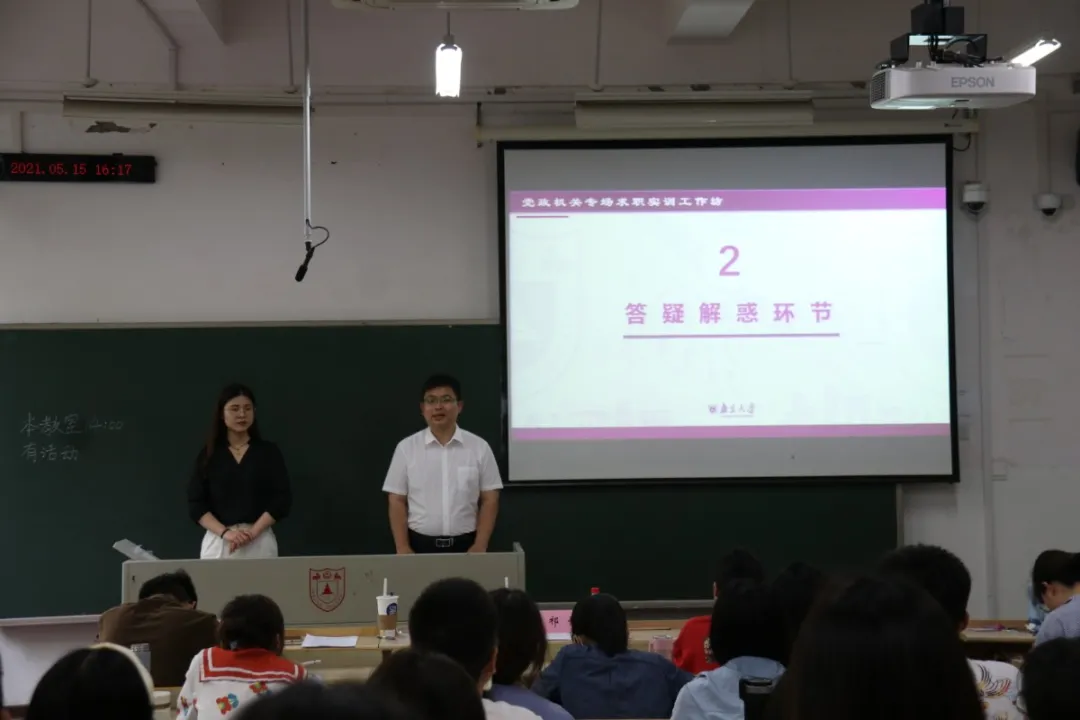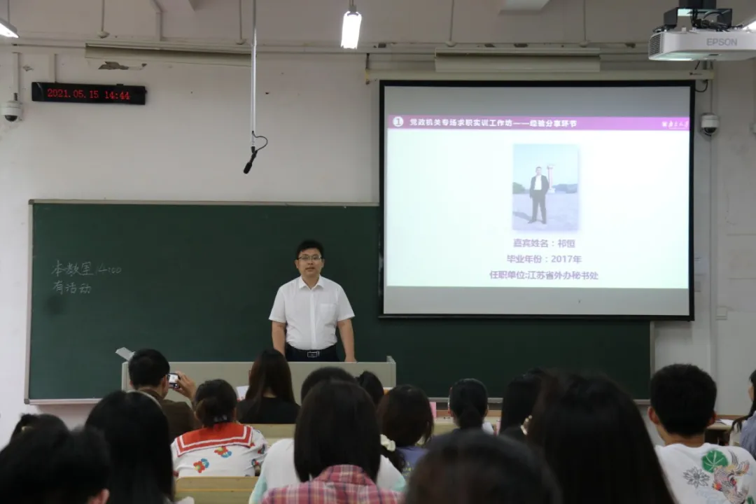 为增进南大学子对党政机关行业的了解,服务南大学子对党政机关求职的的诉求,提升南大学子成功入职党政机关行业的竞争力,2021年5月15日下午,bw西汉姆联研究生会成功举办“‘职场初探’党政机关专场求职实训工作坊”。