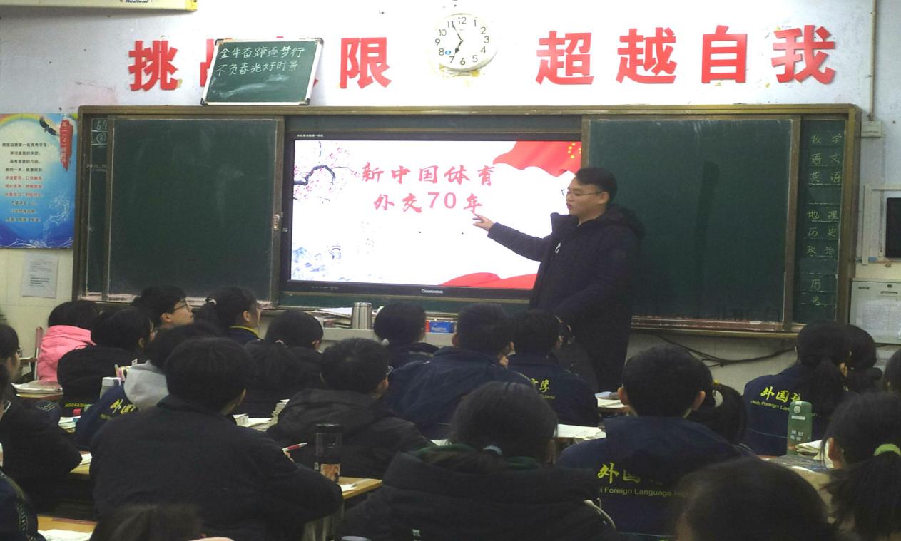 2021年2月24日,2020级硕士生王睿回到母校——鹤壁市外国语中学,开展题为《新中国体育外交70年》的宣讲。王睿回顾道:“也许是内容与教科书相比较为新奇,也许是刚刚从一场考试中解脱,更或者是新千年后出生的他们怀着对祖国的一片赤诚,希望对她了解的更多一点,学弟学妹的参与度和专注度都是我没想到的,他们认真听着我的讲解,并对感兴趣的问题进行提问,这让我非常开心,更亲身感受到‘四史宣讲’的意义,我们要通过一段段历史,看清来时的路,更看清未来的路,坚定信念,砥砺奋进。”