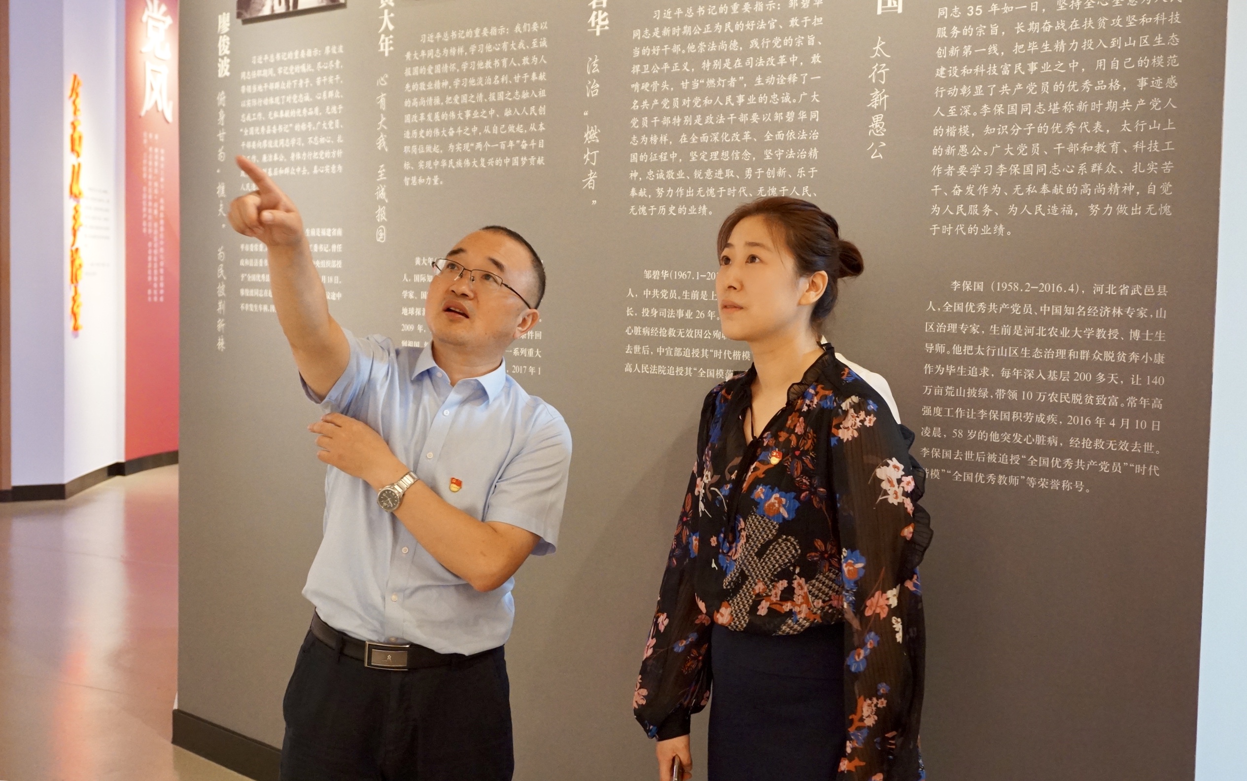 仪式过后,王建华一行对花桥党群服务中心进行了实地考察,通过参观政治生活体验馆,切实感受到花桥历史突显出的“党建引领·海棠花红”的时代精神。调研团队结合学院自身的党建工作经验和学科发展特色,为提升花桥党群服务中心党建规范指导中心和创新研发中心的功能定位、形成“资源共享、党建共做、优势互补、协调发展”的基层党建工作格局提出了针对性的意见和建议。