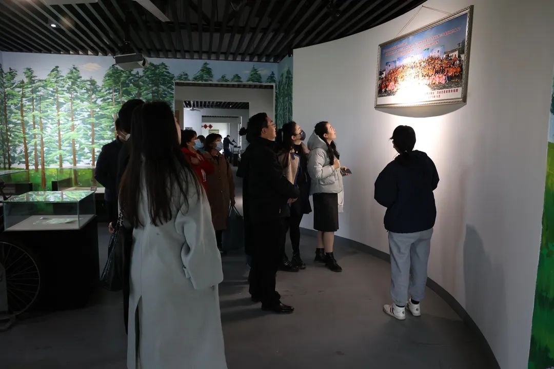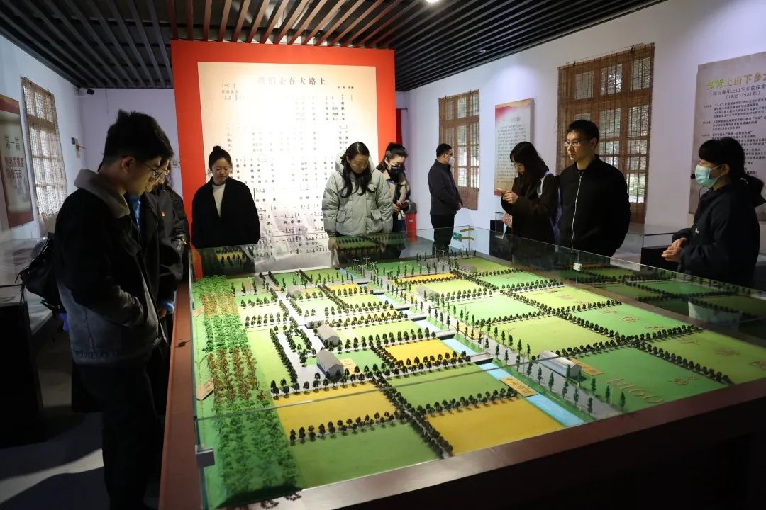 调研团赴长江社区知青家园参观五七农场学校旧址。1968年,来自南京、六合、扬州的知识青年汇聚于此,将一片荒摊改造成千亩良田,把一条乡道种成了万米水杉大道。聆听着讲解员的讲述,同学们在一个个老物件、一张张老照片前不时驻足凝视,感悟“知识青年上山下乡”的峥嵘岁月。