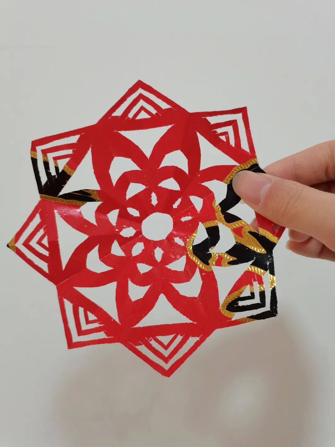 此次党日活动我选择了富有节日氛围的剪纸,很开心能在剪纸过程中重温儿时做手工的乐趣。在剪每一处细节时,我的心也不由得跟着静了下来,全神贯注于剪刀所指。未来,希望能有更多的机会体验更多的中华优秀传统文化!
