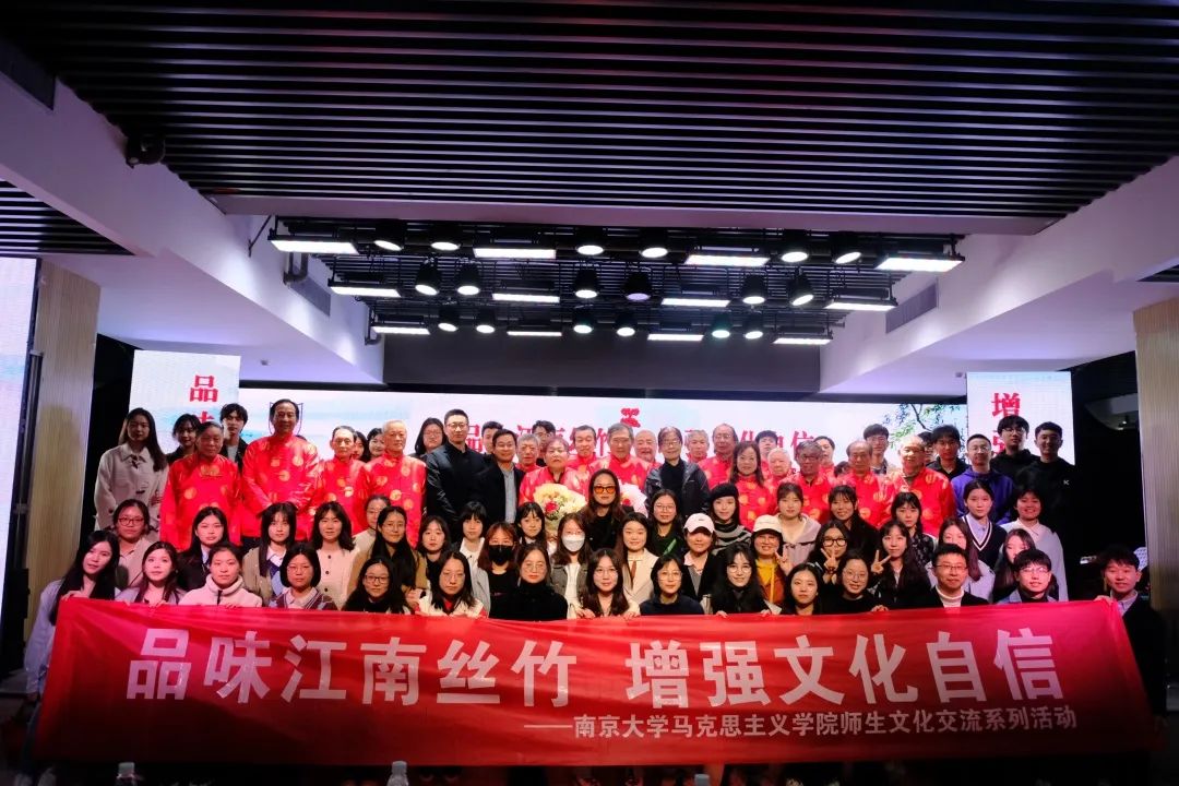 “秦淮碧波荡漾,丝竹古韵悠长”。为深入学习贯彻党的二十大精神,弘扬中华优秀传统文化,提升美育素养,增强文化自信,3月12日下午,在公司2022级本科新生导师暴庆刚、戴雪红两位教授的精心策划和带领下,来自本硕博多年级的八十余人齐聚南京市秦淮·非遗馆,共同欣赏南京市非物质文化遗产江南丝竹专场音乐会,并参观非遗馆,了解南京“非遗”文化。本场音乐会由中国四大乐社之一的南京乐社江南丝竹乐团演奏,甘熙故居一代民乐大宗师甘涛先生之子、著名二胡演奏家甘梵先生和著名扬琴演奏家李家振先生领衔,秦淮·非遗馆副馆长江楠先生莅临本次活动。