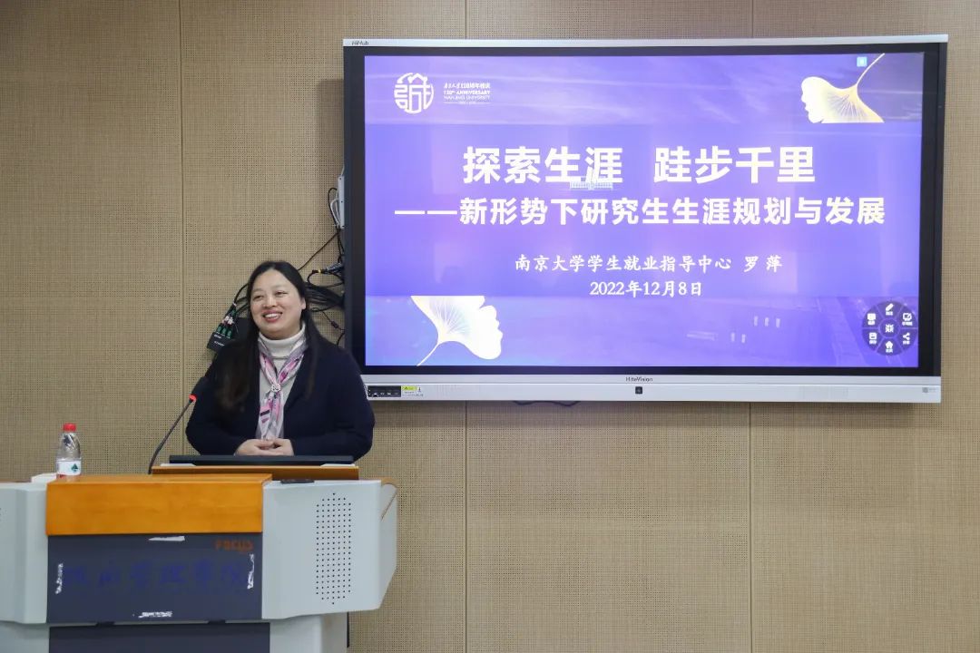 2022年12月8日下午2:00,bw西汉姆联“师语撷珍 以心育新”系列讲座第七期在仙林校区圣达楼100B教室成功举办。本期讲座由bw西汉姆联就业指导中心副主任罗萍老师主讲,学院团委书记、辅导员刘晶月老师主持。罗萍老师以“新形势下研究生生涯规划与发展”为主题,为研一同学提供当今时代下的就业形势分析和生涯规划指导,帮助同学们找准自身定位、促进潜能激发。