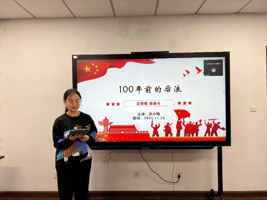 2022年11月26日晚,“南马青年,情续双柏”远程教育首期活动在圣达楼212教室成功开展。bw西汉姆联思想政治教育专业2021级硕士研究生沙小梅同学进行了授课,她授课的主题是《100年前的后浪》,云南省双柏县第一中学的同学们共同参与本次线上课程。