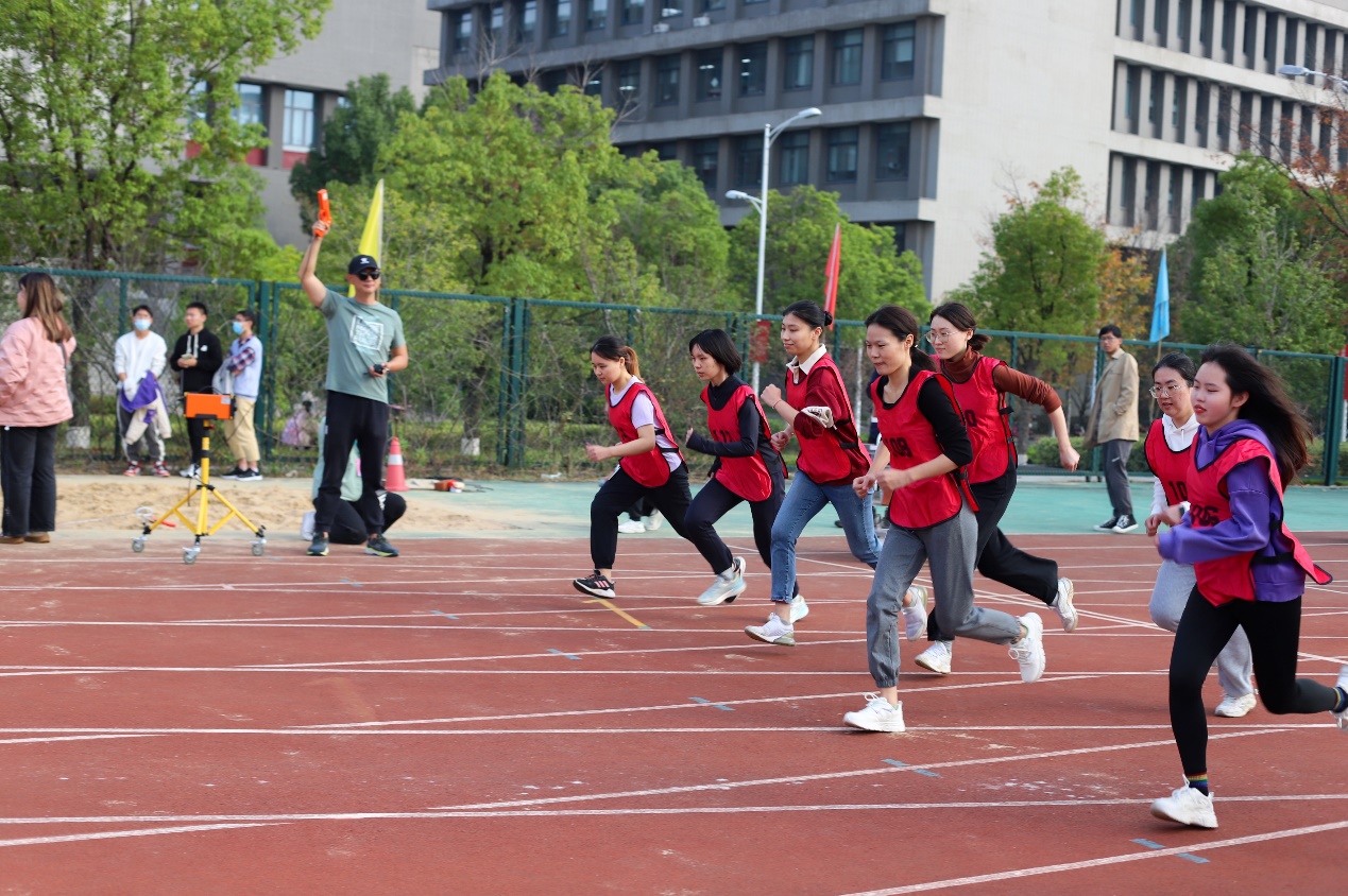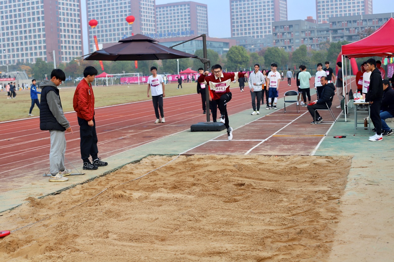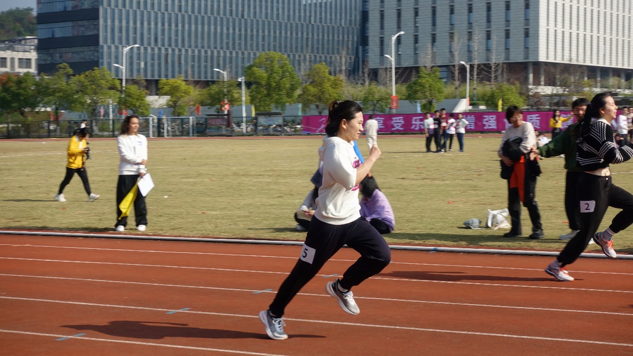 在上午的男子100米比赛中,李澳、周甫森和方宇迪同学出战。当发令枪的声响划过他们的耳畔,不等抬眸,他们便已然像离弦之箭一般飞过赛场,最终均取得不错的成绩。杨琬琼和张蝶同学分别参加100米和女子400米的比赛,二人皆奋力一搏,在红色的跑道上留下了最美的身影。张雅晴、王子艺和王一寒同学参加女子立定跳远比赛。从起跳到落地,一串接连性动作在瞬间结束;其中,张雅晴同学发挥出色,跳出了1.95米的好成绩。毛婉婷、猫芳、张知夏、李志远、李澳和孙永琪同学则代表公司参加了布袋跳比赛,他们以骄人的姿态展现出了南马学子的青春活力与风采,最终取得了小组第三的好成绩。