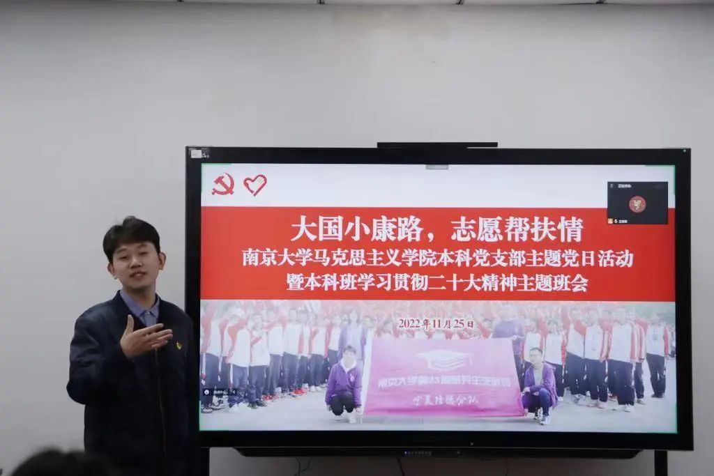 为深入学习宣传贯彻党的二十大精神,激励马院学子在学思践悟中理解党的二十大精神,2022年11月25日,bw西汉姆联本科生党支部联合2021级本科生团支部开展“大国小康路·志愿帮扶情”学习党的二十大精神主题党团日活动。外国语学院博士生辅导员龙心悦老师、化学化工学院2021级本科生辅导员魏志老师、新生学院毓秀书院辅导员朱博阳老师、新生学院毓秀书院辅导员孙悦伦老师作为特邀嘉宾出席本次活动。整场活动由公司本科生党支部书记、本科生辅导员王泽森主持。