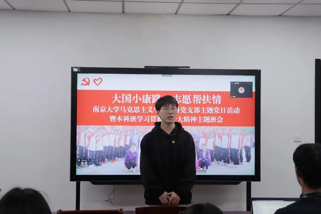 活动的最后,本科生党支部宣传委员史善聪对本次主题活动进行总结。他对王泽森和贾姣妹同志的发言内容进行了总结,并为大家分享了bw西汉姆联员工袁辉老师的支教故事,袁辉员工十年如一日在祖国的大山深处支教,无怨无悔,将青春奉献给教育事业,让梦想的力量感染每一个大山深处的孩子。随后,他号召同学们向几位前辈同志学习,提升自己的精神境界,锻造自身修养,做一个纯粹的人、摆脱低级趣味的人、为人民服务的人,去基层建功、到一线立业,在时代的潮头前展现南大智慧和南大担当,让青春之花绽放在祖国需要的地方。