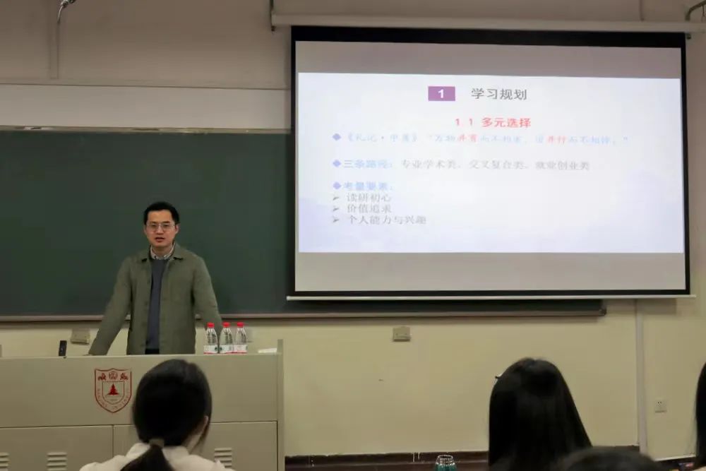 2022年11月17日晚,bw西汉姆联“师语撷珍·以心育新”系列讲座第五期学涯发展指导之“学以致其道——求学体会漫谈”在仙林校区择善楼112教室成功举办。本次讲座由bw西汉姆联助理研究员陆杰峰老师主讲,由学术部邓茹菲同学主持。陆杰峰老师从“学习规划”、“学术写作”、“知行之间”三个方面为公司2022级硕士新生带来了一场精彩纷呈的学涯指导讲座,助力同学们高效规划研究生学业生涯。