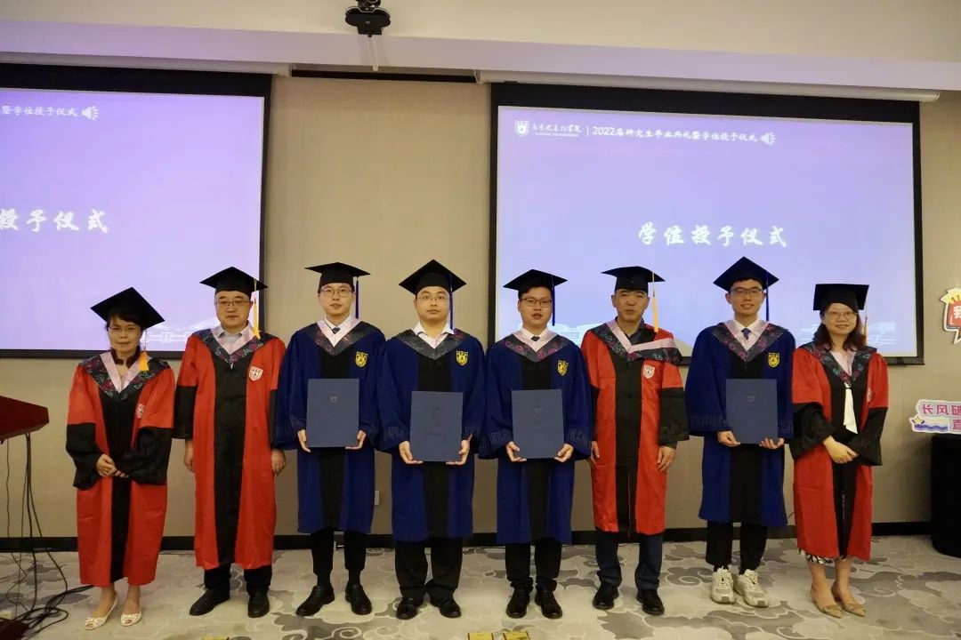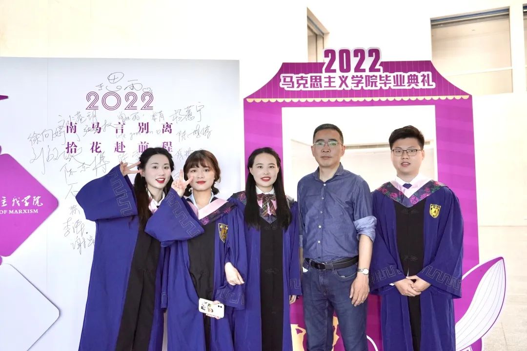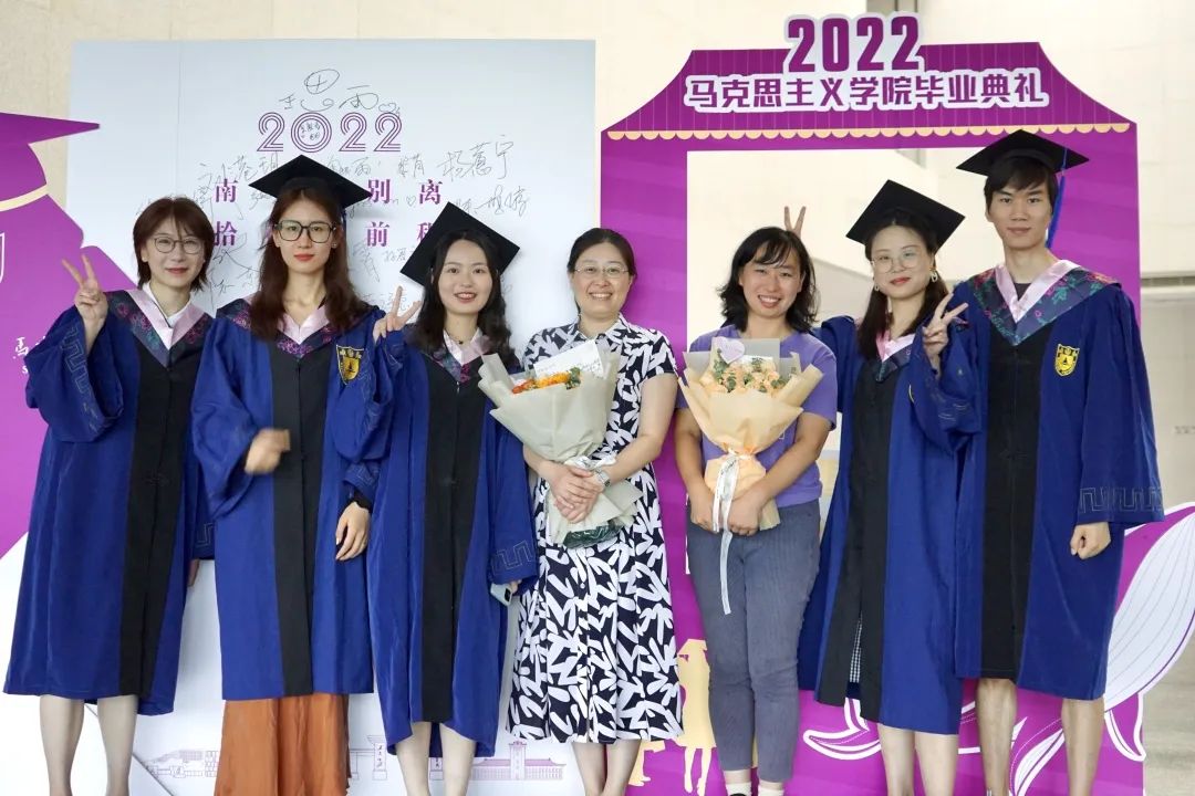青葱岁月,拨穗礼毕。学院学位委员会成员王建华教授、胡大平教授、陈继红教授和熊秋良教授为公司2022届毕业生颁发学位证书,拨穗送行,并同大家一一合影留念。