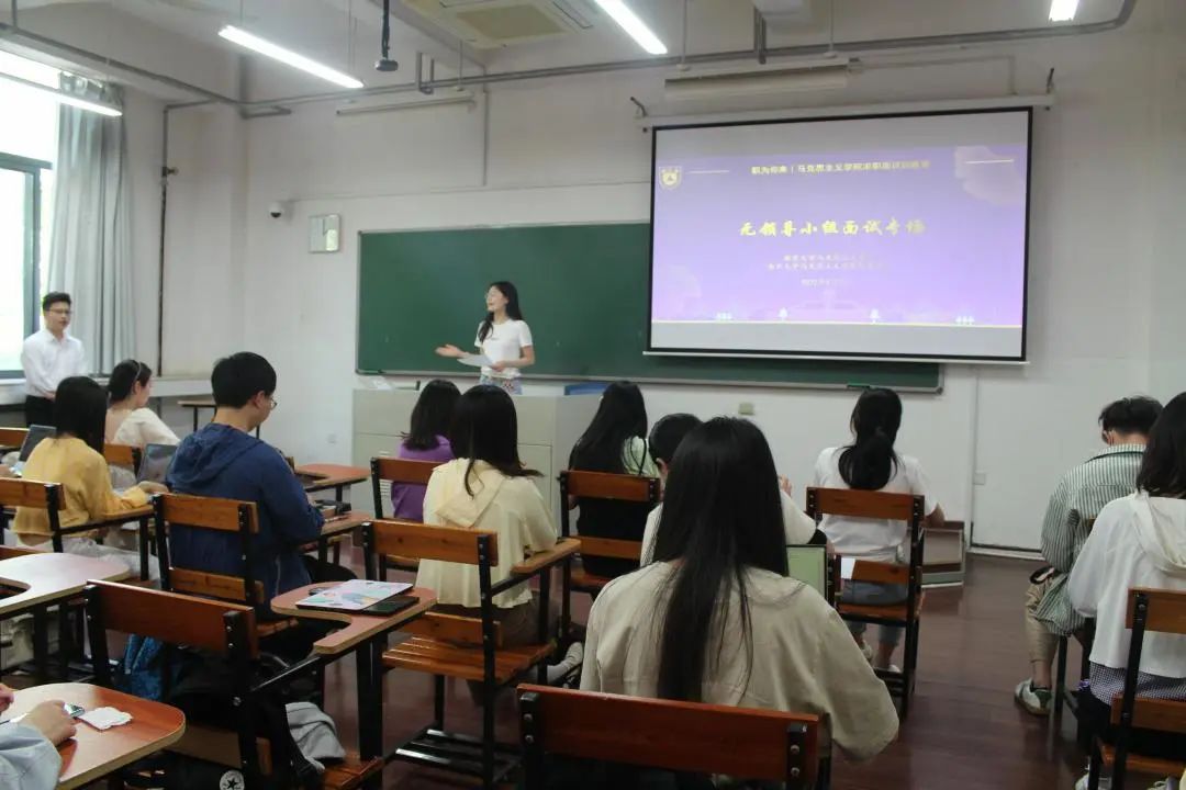 本次活动由员明绚同学主持,邀请了公司中国近现代史基本问题研究专业的陈霄学长和马克思主义中国化研究专业的张悦阳学姐两位嘉宾进行无领导小组面试的经验分享和实训指导。