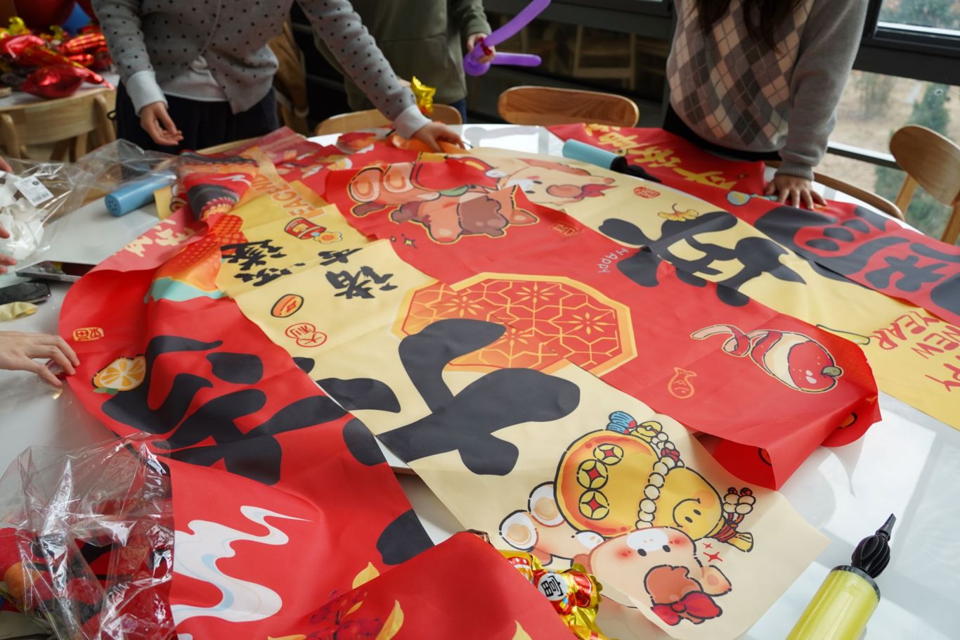 主持人热情开场之后,最令人期待的包饺子环节便正式开启。师生们洗净双手、戴上手套,柔软的饺子皮在指尖翻飞,鲜美的馅料被满满包裹——有的同学手法娴熟,筷子轻挑、指尖一捏,胖嘟嘟的元宝饺便整齐列队;有的同学初学乍练,慢慢将饺子皮边缘沾水、对折、捏合,虽偶尔有馅料 “探头探脑”,却也别有一番趣味;更有创意十足的同学将饺子捏成福袋形,寓意新岁纳福、好运满满。指尖流转间,真挚的心愿便捏成了具象的形状。