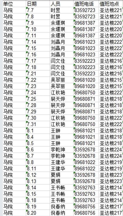 暑期值班表