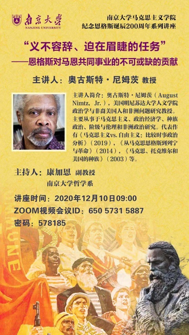 恩格斯作为马克思主义的创始人之一,曾多次谦虚地以“第二小提琴手”来定位他在马克思主义形成和发展过程中的作用。然而恩格斯这一自我定位引发了国内外对于他思想贡献和历史地位的不同认识甚至误解。为了更好地厘清并理解这些问题,本次讲座有幸邀请到美国明尼苏达大学奥古斯特·尼姆茨教授为师生们主讲《“义不容辞、迫在眉睫”任务——恩格斯对马恩共同事业的不可或缺的贡献》。