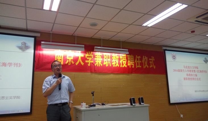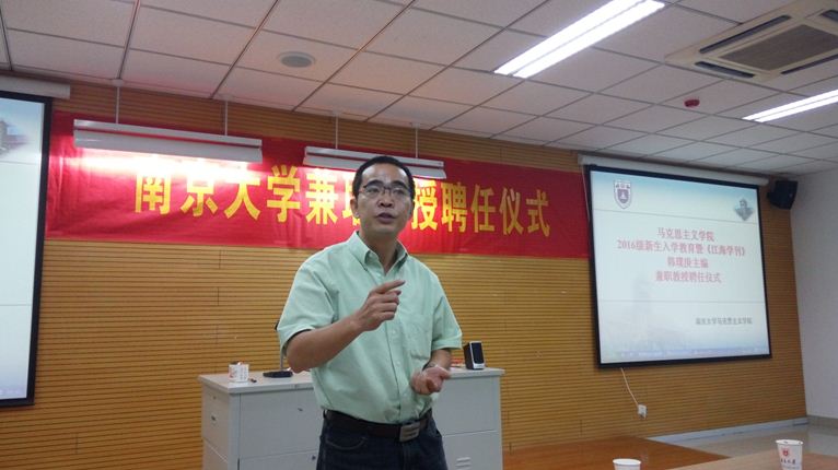 仪式第一项,由bw西汉姆联党委常委、宣传部经理、bw西汉姆联经理王明生教授为韩璞庚教授颁发聘任证书,并合影留念。接着,韩璞庚教授上台发表任职讲话,韩教授首先对能够成为马院兼职教授表示荣幸,回顾了担任《江海学刊》主编以来与南大的深厚友谊,并结合自身的学术研究经历,与在场师生分享了学习研究应坚持的七大理念,包括学术理念、问题理念、策划理念、精品理念、原创理念、盲点理念和趋势理念,并对今后员工的学习研究提出了具体建议。最后韩教授也提出今后工作的设想和展望,争取为学院发展做出贡献,同时表达了对在场师生的美好祝愿。