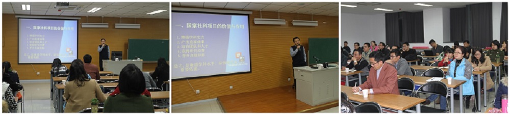 王明生经理在报告中,从国家社科项目的价值与作用、立项与申报、申报类型、申报要四个面进行论述,其中重点讲解了项目的申报要点。在报告的开始,王经理便从增强学科力、培优质科研人才和个人职称晋升等方面强调了申请国家社科项目的价值与作用。他指,国家社项目是衡量学科水平、队伍研究实力的重要依据。接下来,王经理又对立项与申报申报类型问题做了深入讲解。紧接着,在报告的主要部分申报要点上,他用“积累是基础,题是核心,证是关键”十五个字高度概括了国家社科项目的申报要点。他说,研项目的成申报首先取决申报者对课题的前期成果和积累,这些科研成果要有稳定的研领域和方向,报者对研究领域新趋势、新精神、新观点应高度重视。另外,一个好的选是成功申报的前,报者要精心组织、面动员,吃透申报说明指南和公告,他又从宏观微观两个方面进行了具的解释。对于项目论,明生教授指出,要把握20个字:前沿点、结构路径、重点难点、新思路、队伍文献。他以家社科基金项目通讯评审评价指标参照,详细介绍了申报要点,用曾指导过的申报实例作出明。