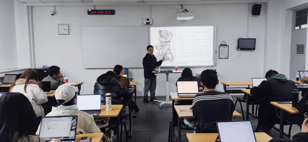 在交流环节,在场师生就画家个人风格与国家主题创作之间的关系、美术界的理论论争以及作品修改背后的技术细节等问题与主讲人展开讨论。潘老师强调,众多艺术家在融合中西、平衡艺术性与政治性方面做出了重要探索,其创作既是个人艺术理想的实现,也是时代精神的视觉凝结。在视觉享受中,本次讲座揭示美术不仅是审美对象,更是政治叙事、文化认同与历史记忆的重要载体。新中国以来的主题性创作,通过革命历史、劳动建设、民族团结与国际主义等多重主题,共同构筑了一套影响深远的国家视觉体系。在热烈的掌声中,本次讲座圆满结束。
