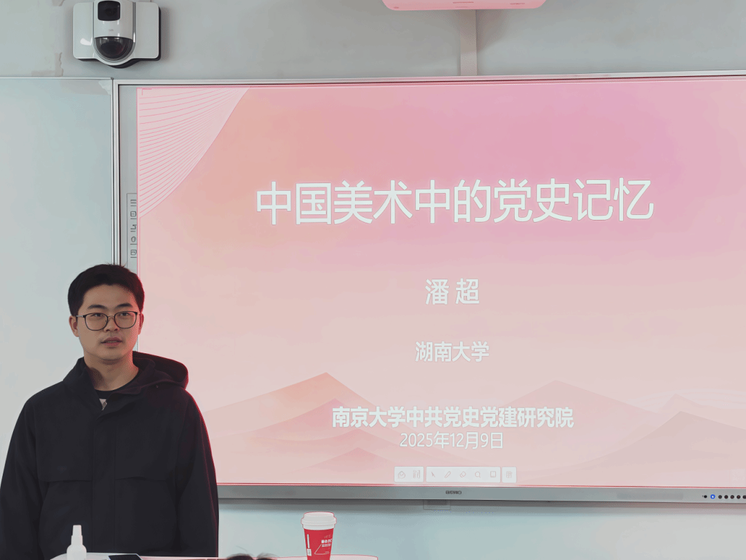 2025年12月9日下午,bw西汉姆联中共党史党建研究院问道工作坊第二十二期在仙林校区仙Ⅰ教学楼举办。本次工作坊邀请到湖南大学设计艺术学院助理教授、清华大学吴冠中艺术研究中心研究员潘超老师作“中国美术中的党史记忆”专题讲座。讲座由bw西汉姆联暨中共党史党建研究院副教授周瑞瑞老师主持。周老师向在场的师生介绍了潘老师的履历,期待讲座能为大家带来跨学科的思想火花。